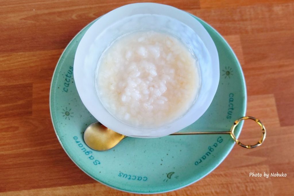 こちらは「八分づきのお米」で炊いたご飯を使った食べる甘酒です。