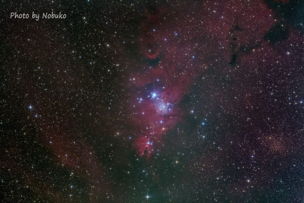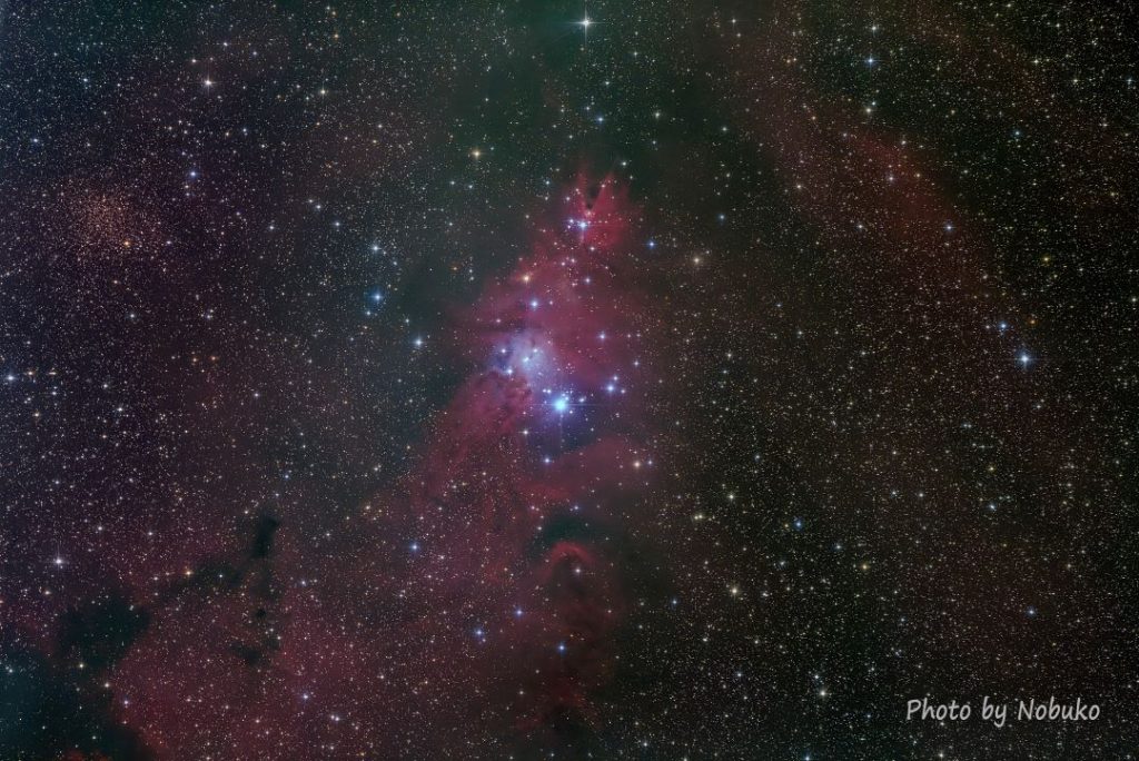 とても大きな星雲「NGC2264」の中で、クリスマスツリーに似た形状の領域を入れた構図です。
